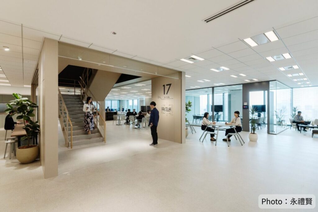 もう一方の「時間の使い方を主体的に考える」では、コミュニケーションの活性化が業務スピードの向上につながることに加え、その根本には、社員一人ひとりが業務内容に応じて最適な環境を自ら選ぶという自律的な行動を促したいという強い思いがあります。これらふたつのコンセプトが、オフィスのエリアづくりにも反映されています。