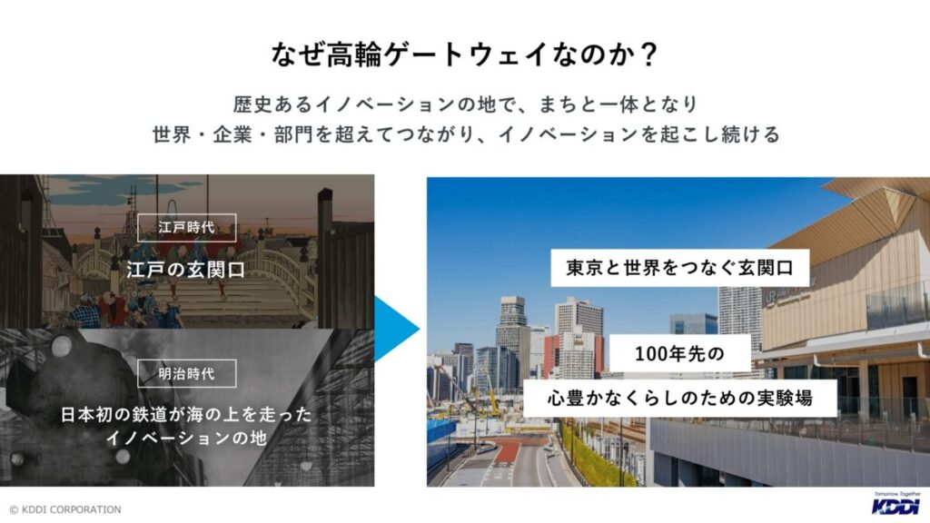 高輪ゲートウェイという新たな街づくりに、JRさん主導で私たちも携わらせていただいてきました。働き方をアップデートする実験場として、歴史を継承しつつ、さまざまな業界、分野の方が交流し、共創を生んでいく。そして、日本からイノベーションを生み出す場として、推し進めていきたいと考えています。