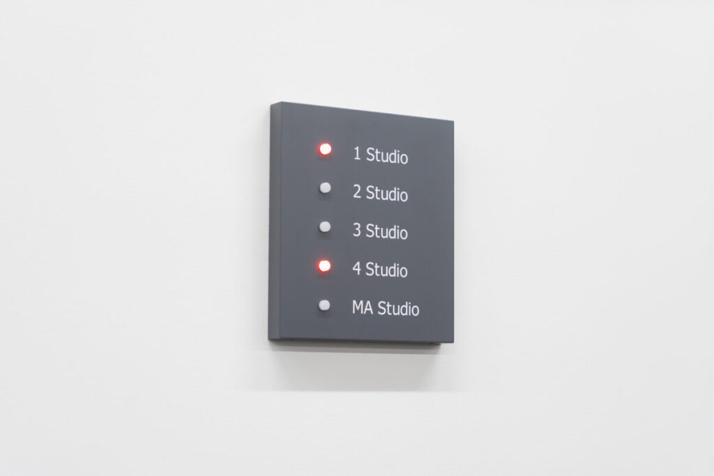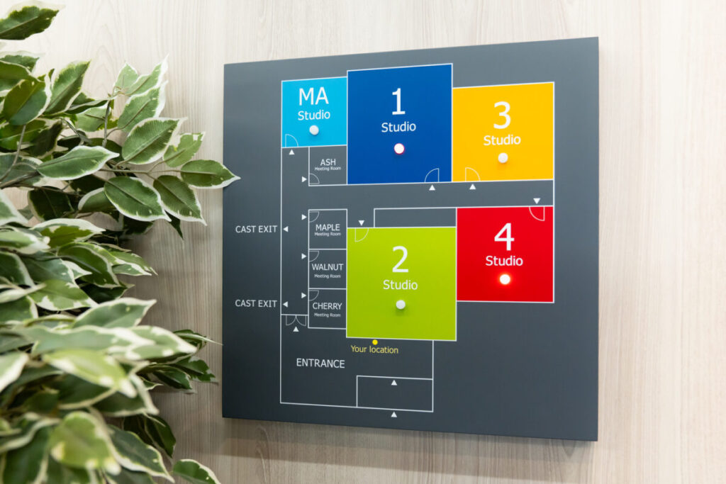 こちらのサインで、お客様だけでなく私たちもスタジオの使用状況が瞬時に把握できます。これがあるのとないのでは、使いやすさが大きく変わります。