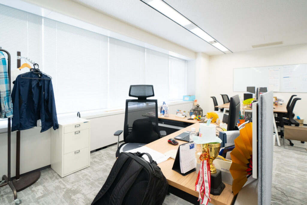 こちらは執務室です。向かい合った席の人と視線が合いすぎないようにする工夫や、カバンが置けるようにワゴンを設置するなど、社員が意見を出してくれて、細やかな配慮がどんどん発展していきました。