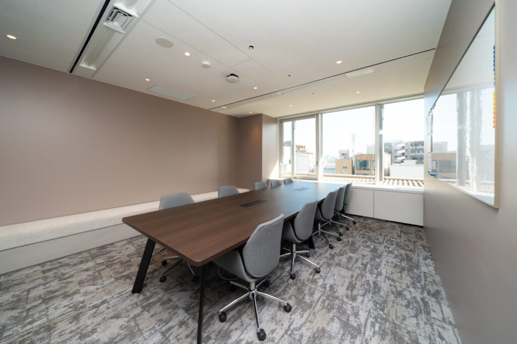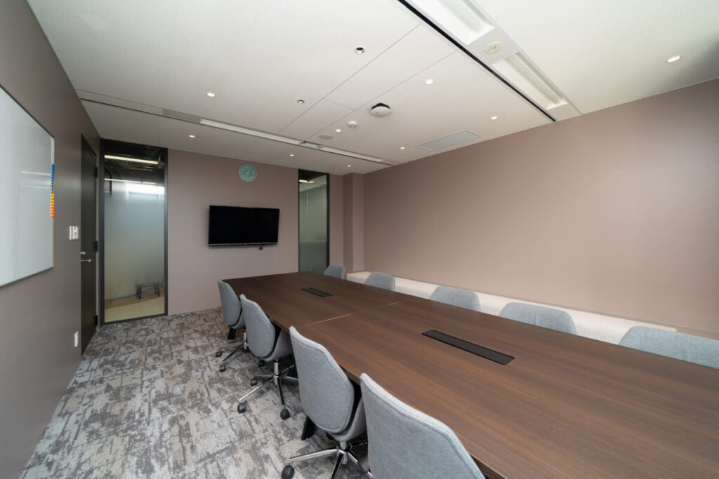 新オフィスでは、エントランスとリフレッシュスペースを設け、休憩や食事、コミュニケーションの場として活用されています。会議室も3部屋用意したことで、来客対応や面談、オンラインミーティングなど、用途に応じて使い分けができるようになりました。