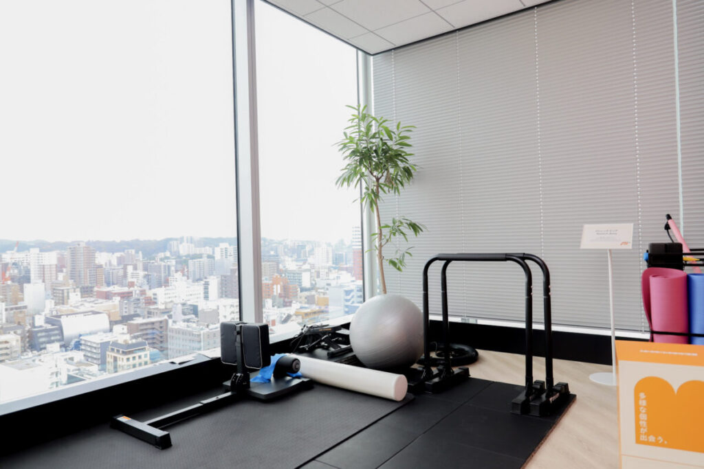 実は、社員からの要望も非常に多くて、ストレッチエリアを導入しました。メンバーがパフォーマンスを最大化できる環境をつくりたいという想いもあって、街を見渡しながらリフレッシュできる設計にしています。