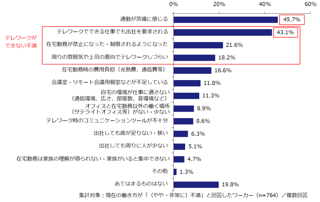 2.テレワークでできる仕事でも出社を要求される(43.1%)