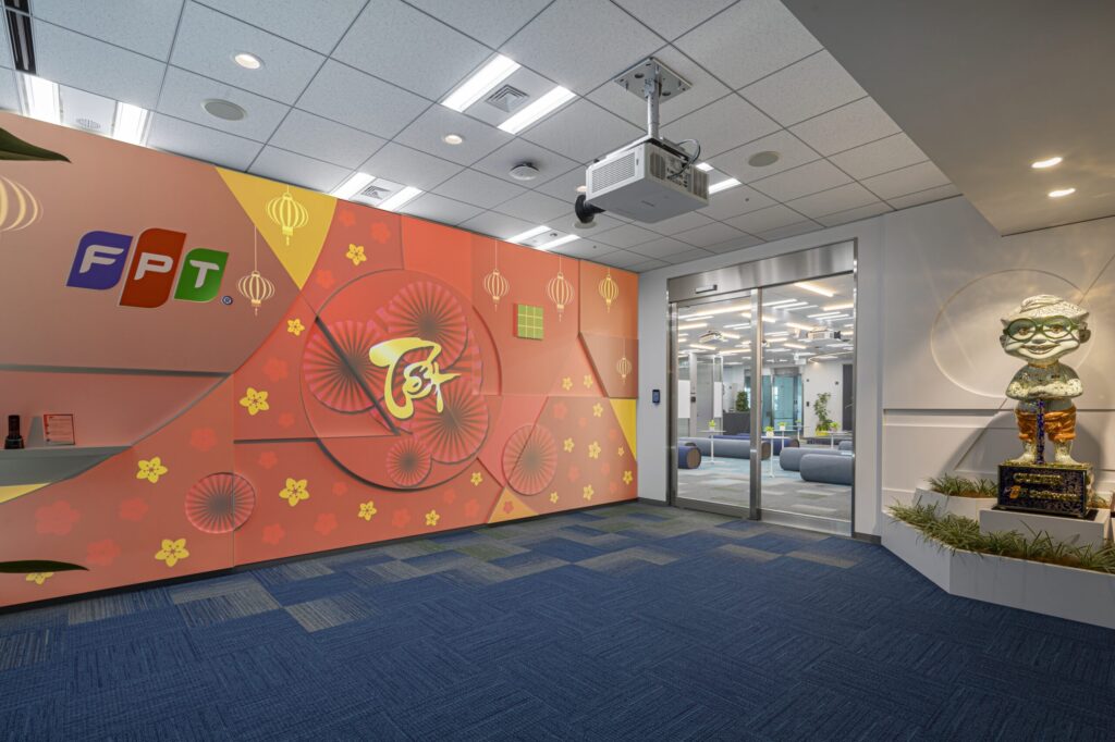 そもそも、FPTコーポレーション自体がお祭り好きな社風なんですよ。ベトナムでは大企業ですが、まるでベンチャー企業のようなノリの良さがあり、その雰囲気が当社にも受け継がれていると感じます。ほぼ毎週、イベントスペースを使って何らかのイベントが開かれている気がしますね(笑)。特に、ベトナムの旧正月の時期になると、エントランスの映像も旧正月バージョンになりますし、ベトナム国籍の社員はそわそわしています。