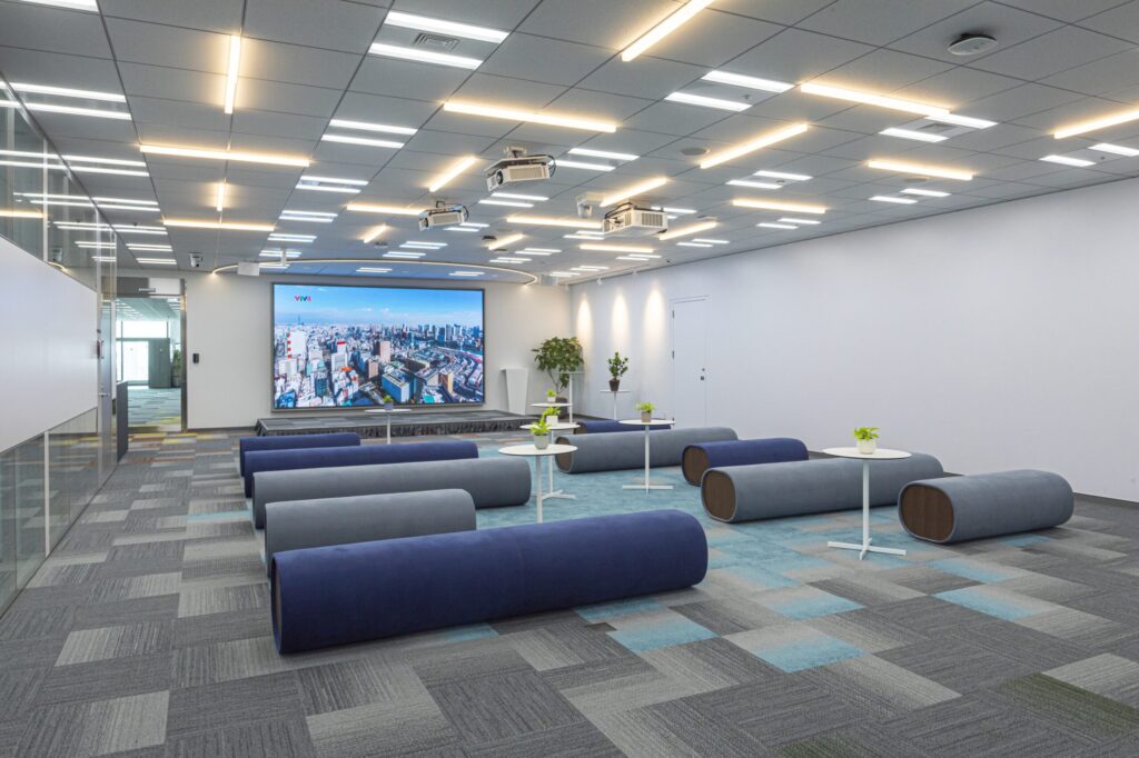 Flexibilityは、空間の多目的性です。固定席をフリースペースに変更したり、平時はイベントスペースをコミュニケーションスペースとして活用したりと、目的に応じて自由に設備を動かすことができます。